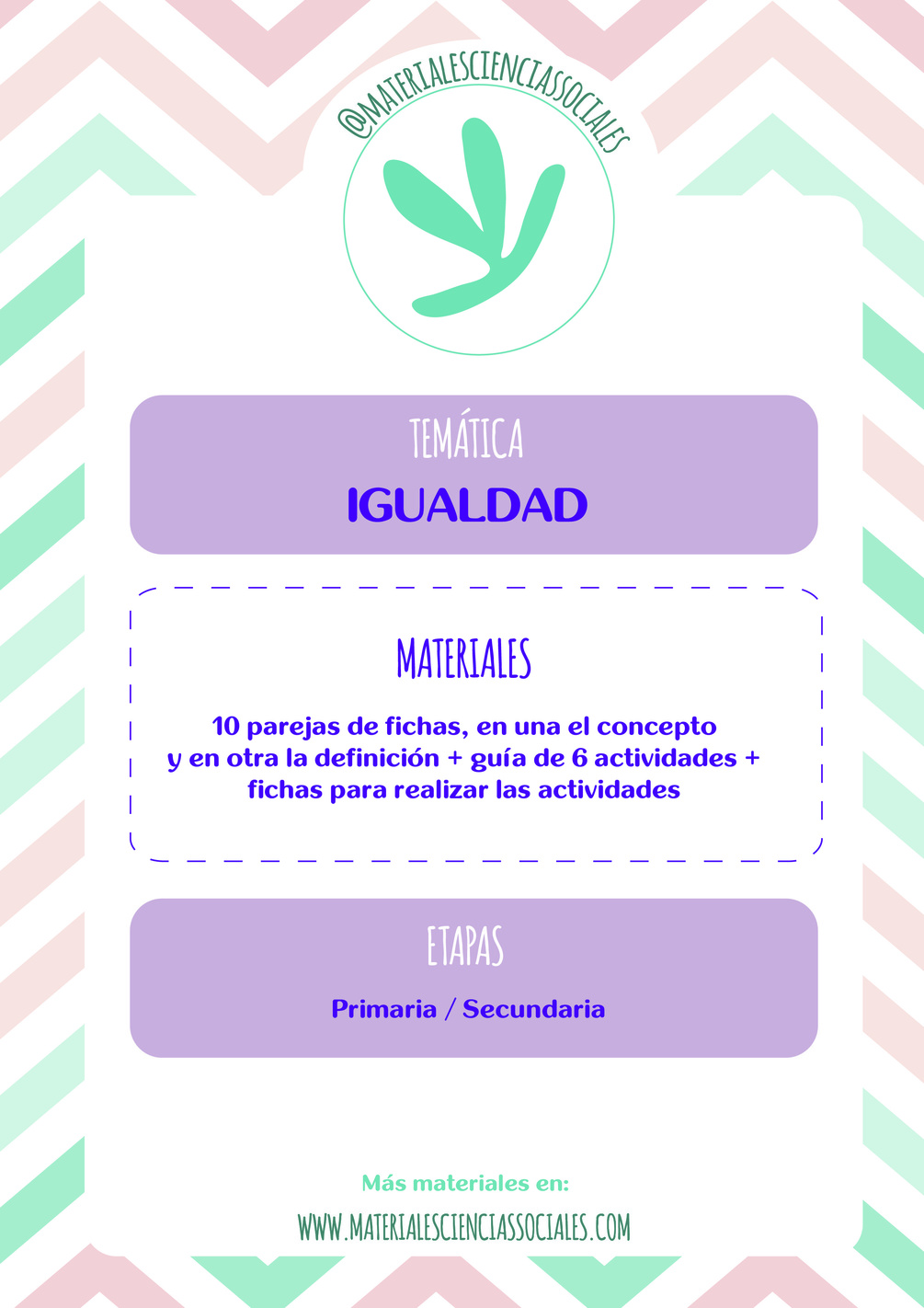 Con este material podrás trabajar en el aula vocabulario sobre IGUALDAD de forma ACTIVA, realizando actividades en las que el alumnado aprenda desarrollando sus competencias y habilidades.